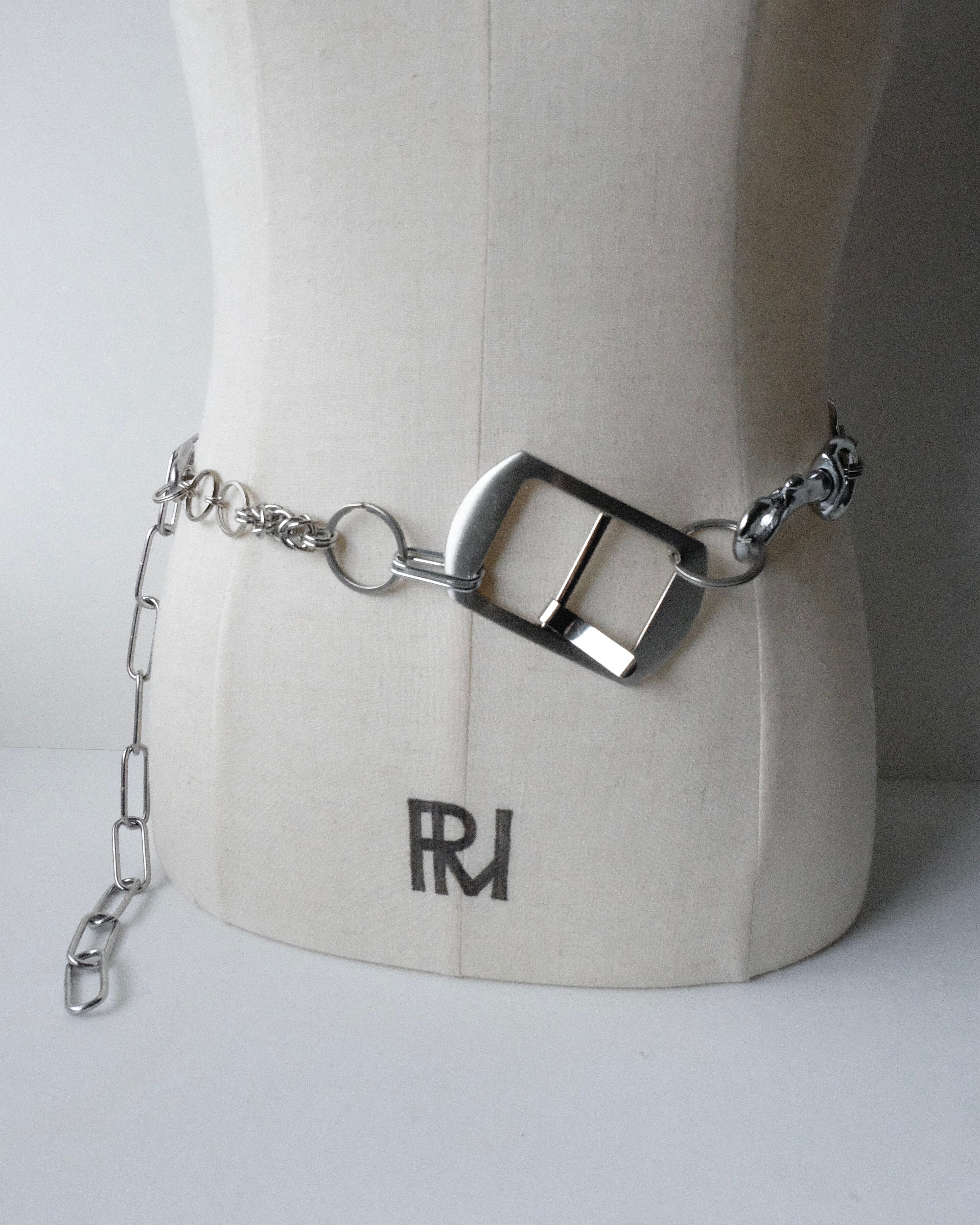 ヴィンテージ・バックルを使用したチェーンベルト。