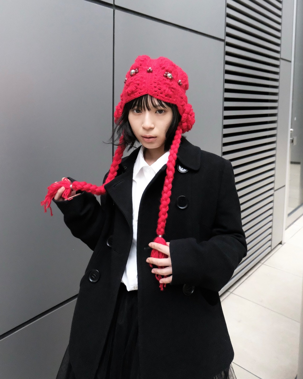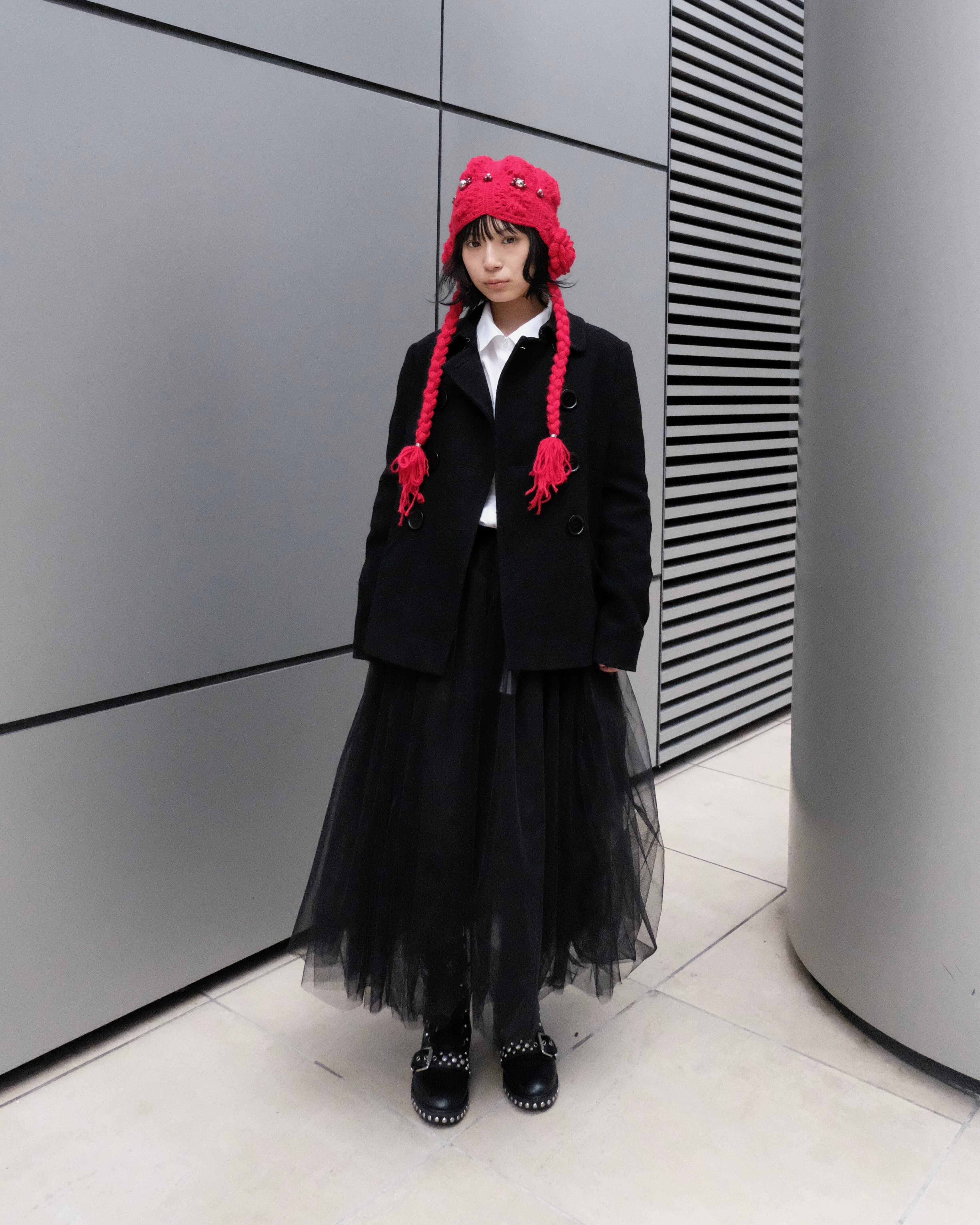 立体的な編み模様と散りばめたメタリックパーツが、冬のスタイリングに存在感をプラスします。